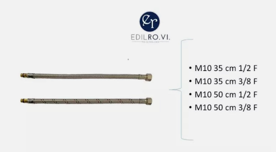 FLESSIBILI IN ACCIAIO INOX MM10 DN8 CON DADO GIREVOLE F IN OTTONE CROMATO SIMIL PARINOX DELLA DONALBI MADE IN ITALY .LUNGHEZZE DA 35 E 50 CM . 2 pezzi